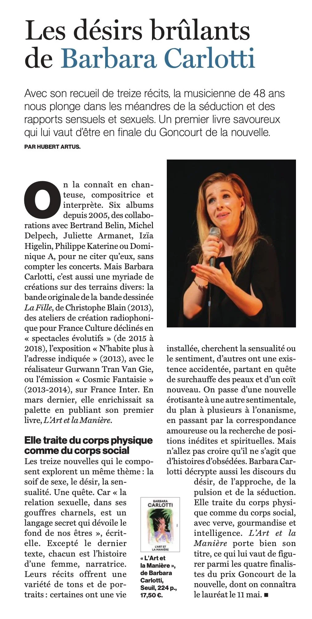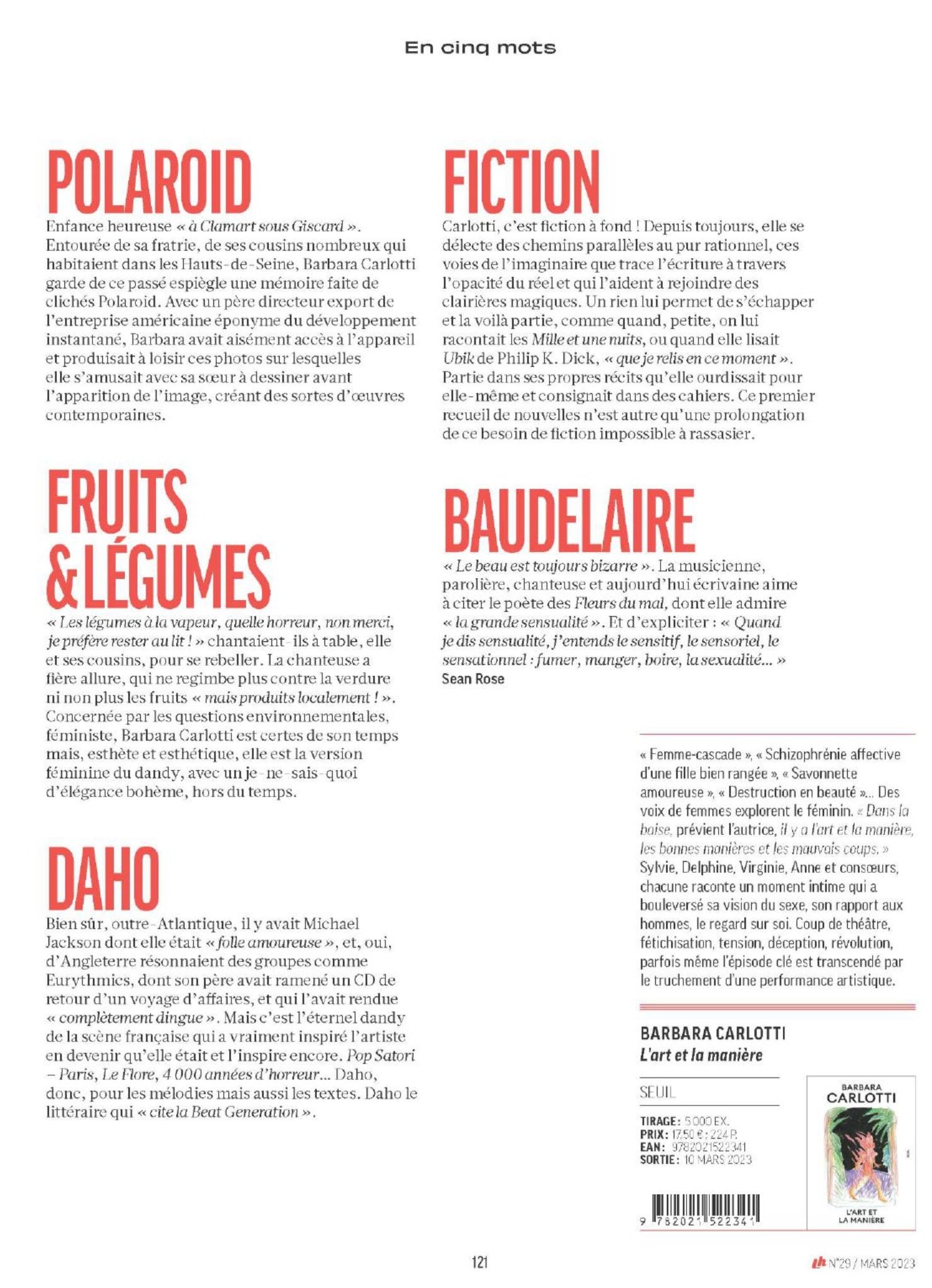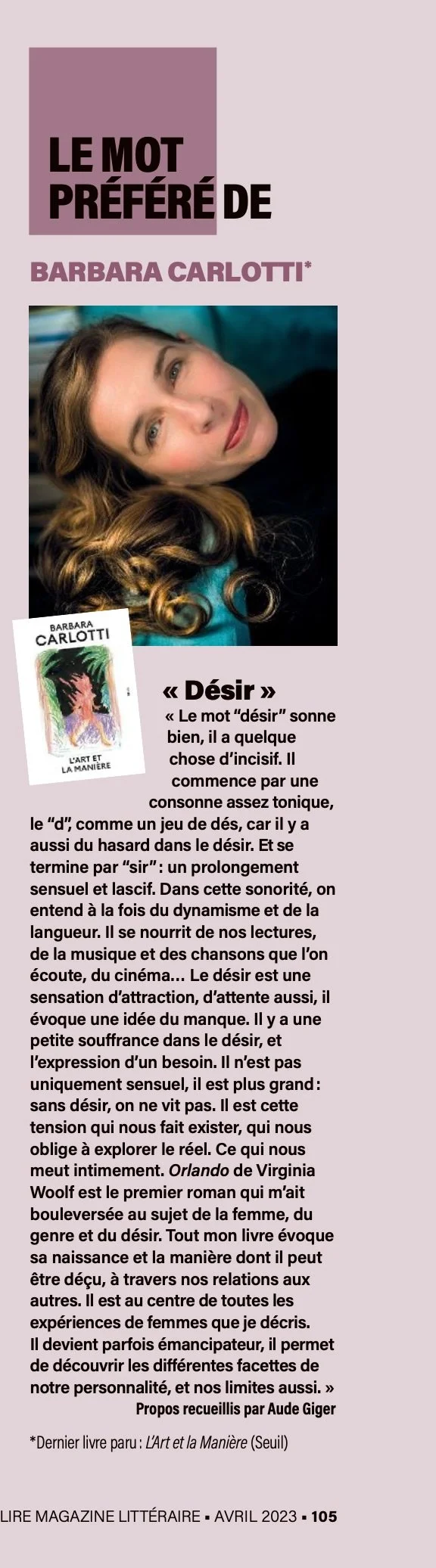 Barbara Carlotti est autrice-compositrice-interprète et réalisatrice. L’Art et la Manière est son premier livre